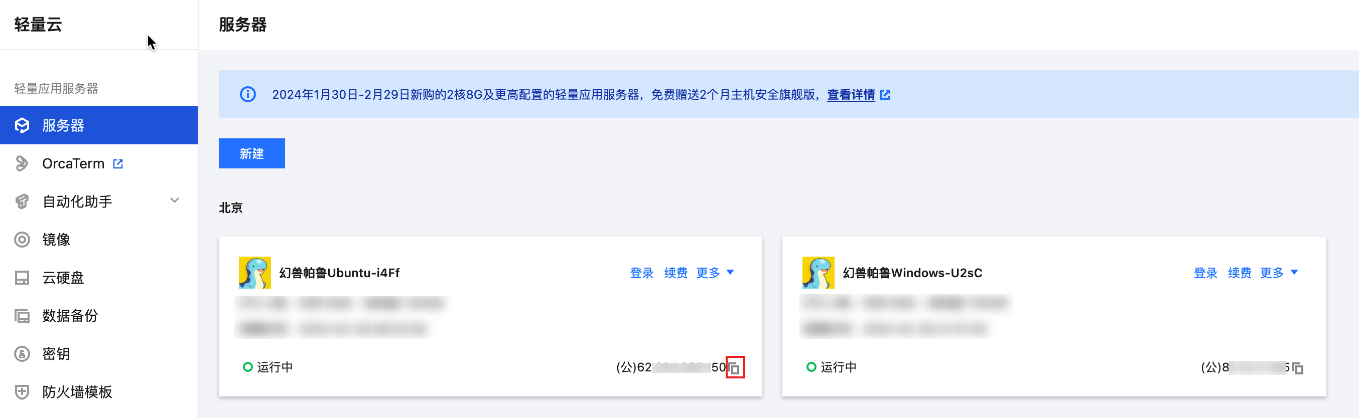 你可以前往腾讯云轻量云控制台查看您当前账号下已购买的幻兽帕鲁服务器: