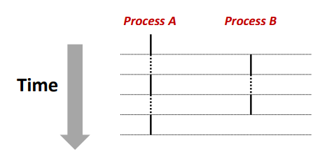 一次只能运行一个进程,进程 A 和 B 是交错的,所以给我们一种同时执行的错觉。