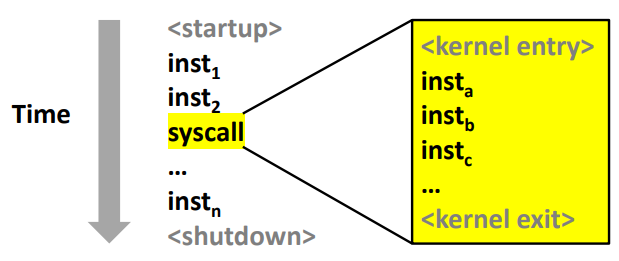 进程由驻留在内存中的共享 OS 代码块管理,我们称之为 内核 (kernel)。