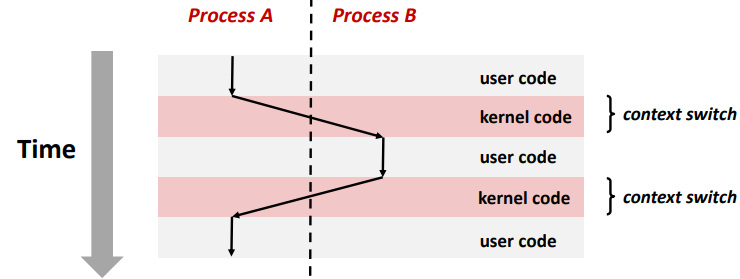 控制流通过 上下文切换 (context switch) 从一个进程传递到另一个进程。