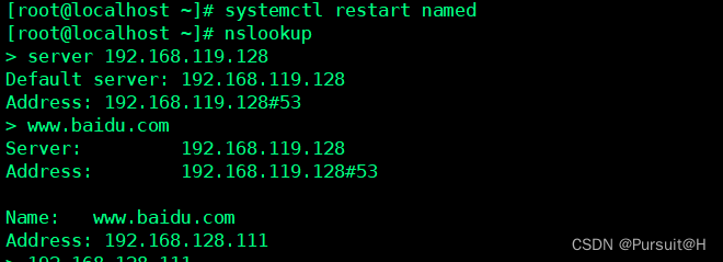 主服务器配置结束后 重启服务systemctl restart named ,使配置生效