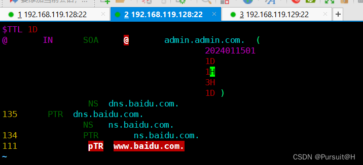 [root@localhost named]# vim /var/named/baidu,如图所示,