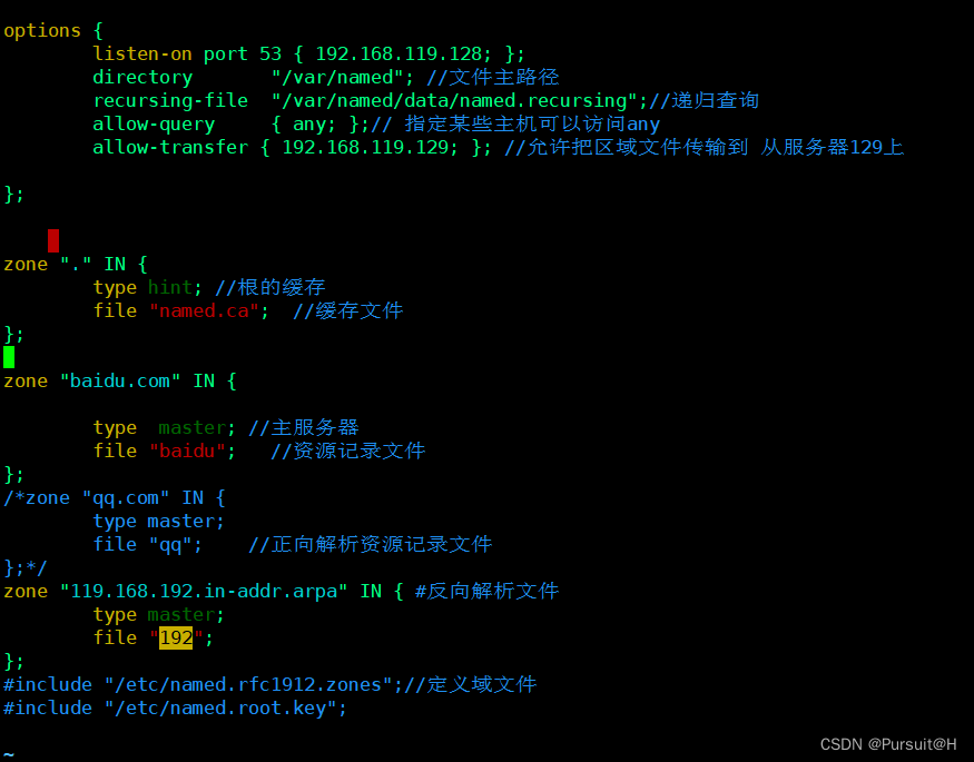 (一)#主DNS服务器的配置【主dns服务器的ip地址为192.168.119.128】