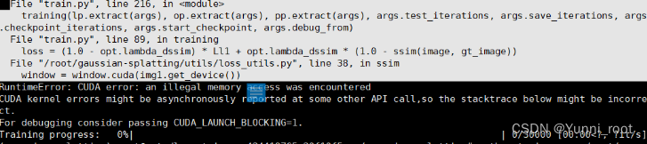 python train.py -s data -m data/output 但是我出现了以下错误:RuntimeError:CUDA error:an illegal memory access was encountered