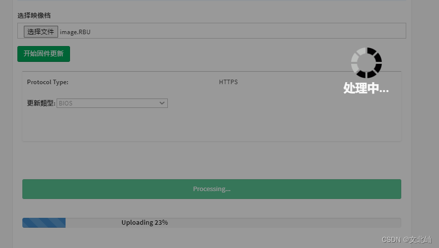 5、等待上传匹配文件后,点击更新BIOS,差不多过程在5-10分钟左右,等待更新结束后会有提示成功信息,点击确定后重置当前页面和会话。然后将主板重启进到BIOS 中查看,就能看到BIOS的版本已经更新好了。