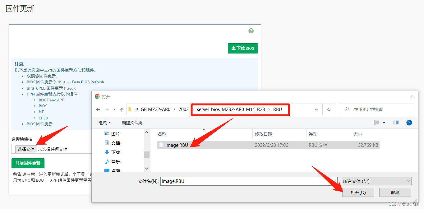3、进入界面以后,按照如下操作:点击选择文件,按照文件路径选择image.RBU文件,点击打开