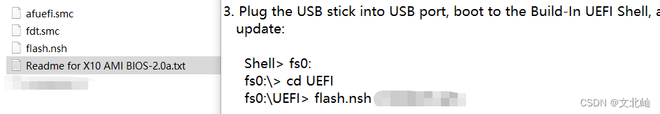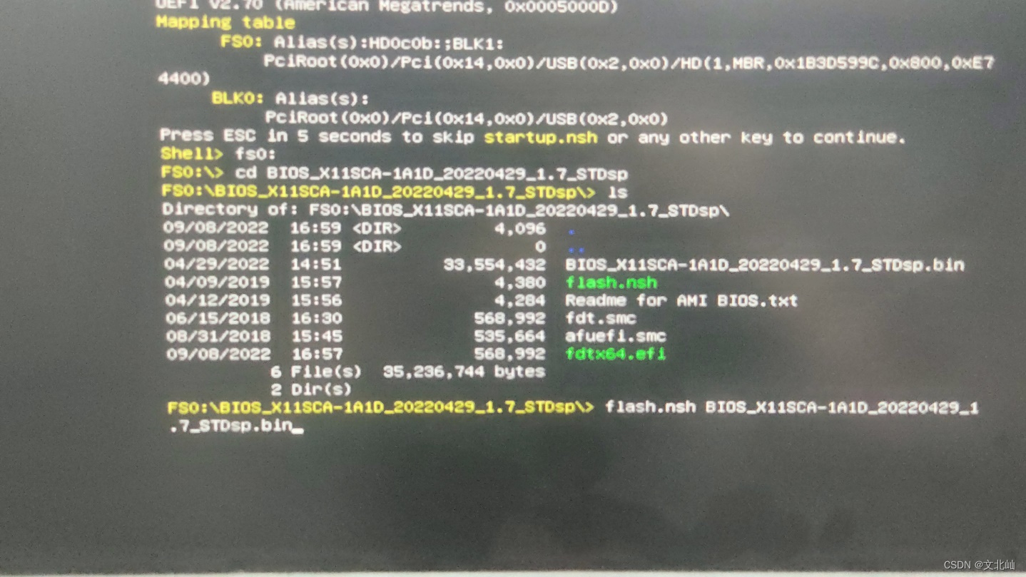 Flash文件是.nsh结尾的通常是用UEFI进行更新,以下以Supermicro X11SCA-F主板为例,详解UEFI Shell下更新BIOS步骤: