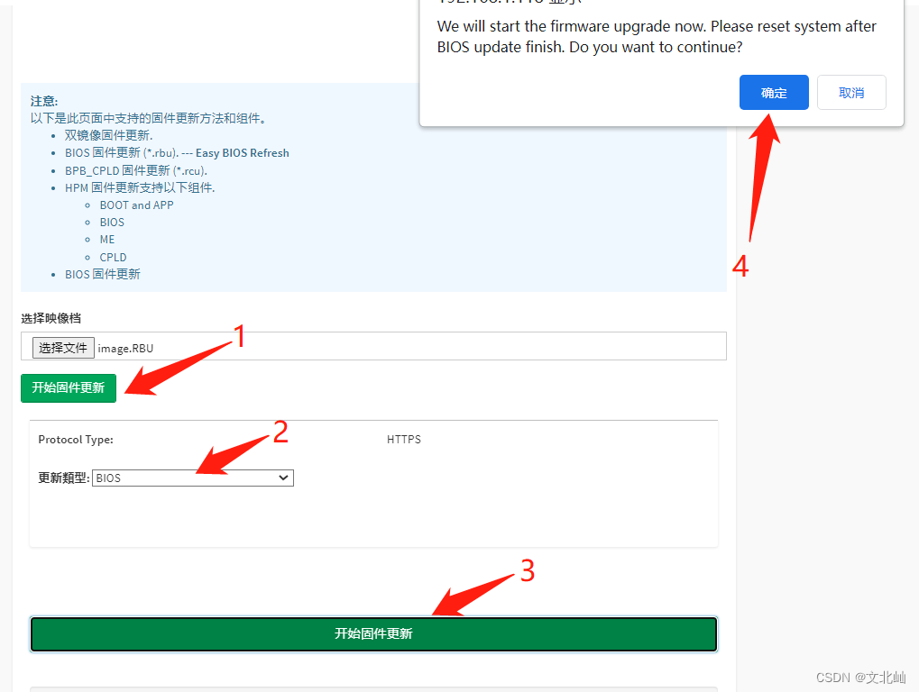 注意2:BIOS更新过程中请勿关闭浏览器或者当前网页,否则更新过程会被中断。