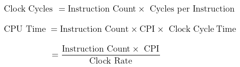 Execution time = (Instruction count * CPI) / Clock rate