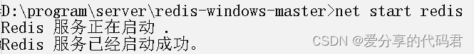 在控制台输入"net start redis"即可启动服务