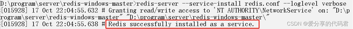redis-server --service-install redis.conf --loglevel verbose