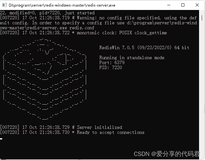 1、双击解压目录下的"redis-server.exe"启动服务