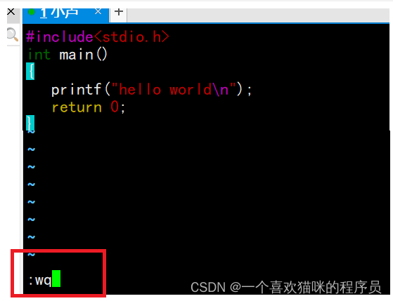 进入vim后,默认是命令模式,命令模式下不能进行编写