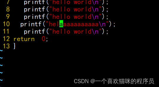 只有在Insert mode下,才可以做文字输入,按「ESC」键可回到命令行模式。该模式是我们后面用的最频繁的编辑模式。