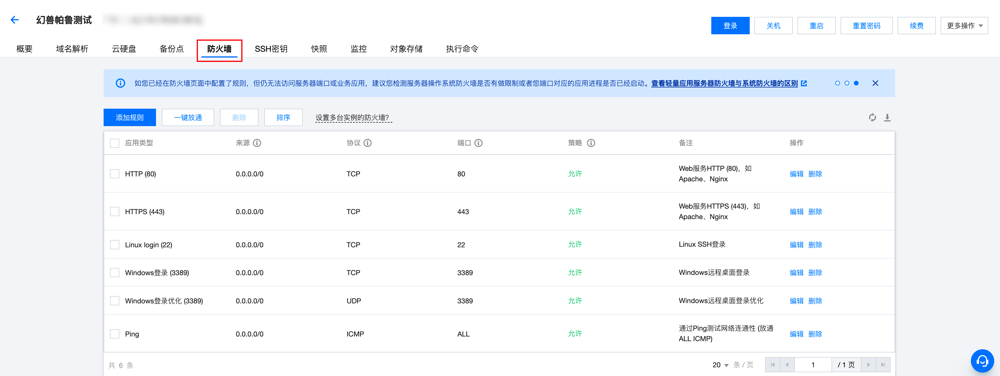 步骤二:在实例详情页单击“防火墙”页签,进入防火墙配置页面。