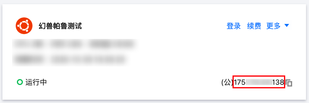 提示:您可以前往腾讯云轻量应用服务器控制台查看游戏服务器的公网IP。在输入服务器的连接地址时,如您的服务器公网IP展示为:(公)175.xxx.xx.138,则您需要在输入链接时填入:175.xxx.xx.138:8211