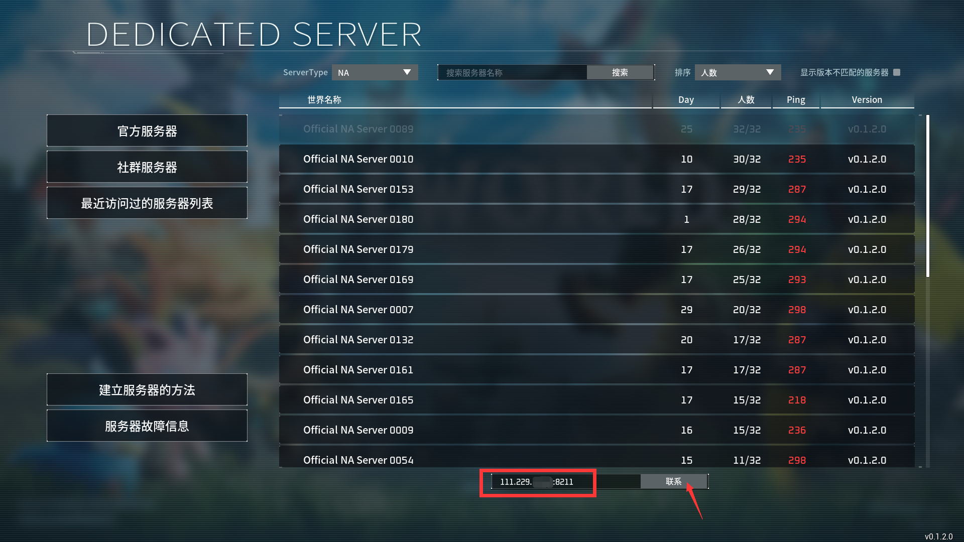 第四步:至此,您已经成功搭建了幻兽帕鲁专属服务器(Dedicated Server),可以让玩家输入您已部署服务器的公网IP地址和端口好(如11.11.11.11:8211),连接服务器成功后即可畅快联机开玩。