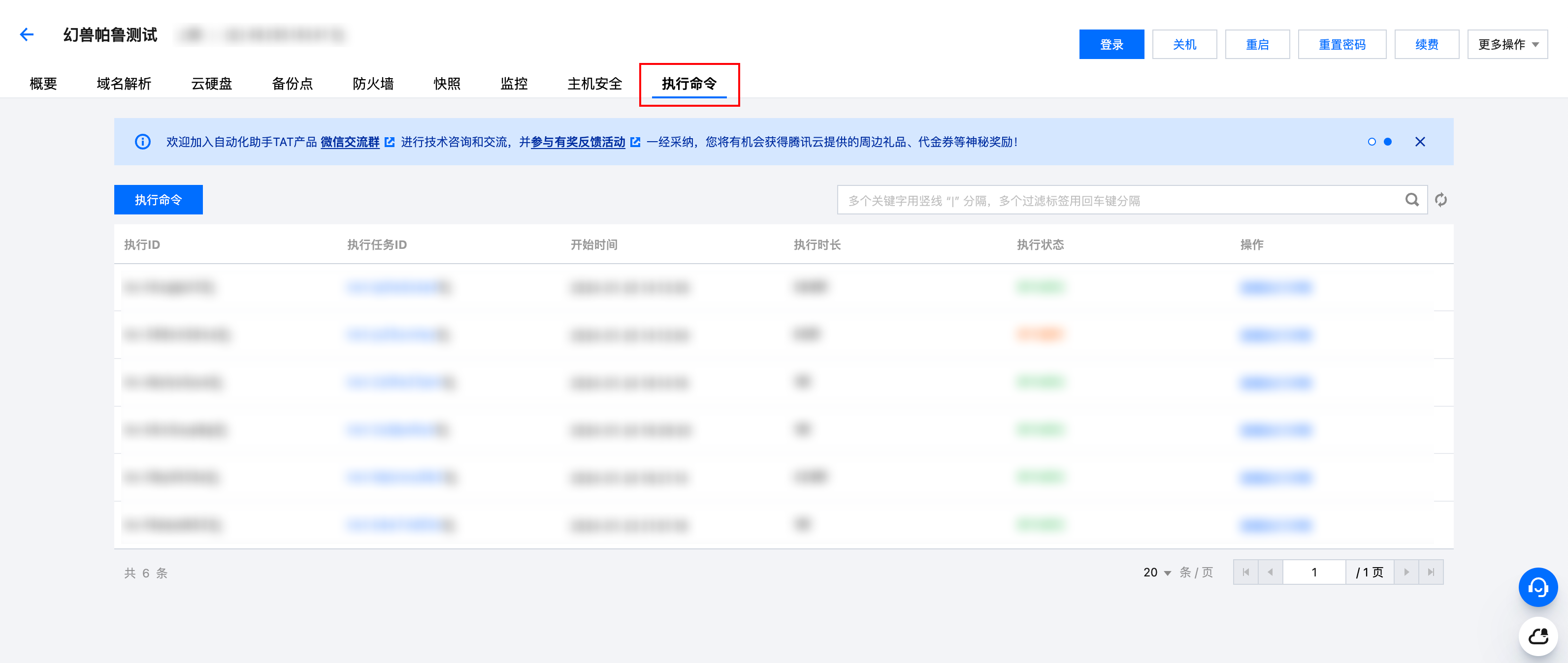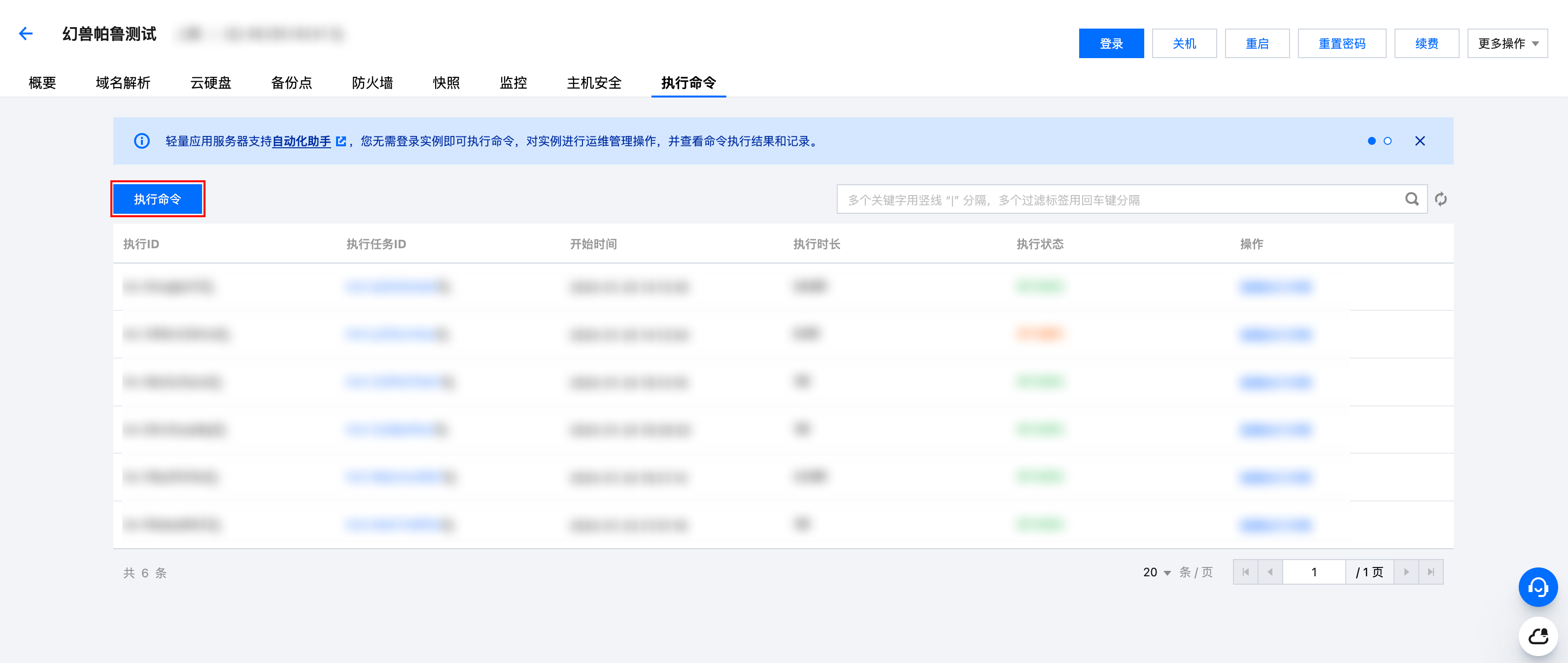 1、在轻量应用服务器控制台,选中对应服务器,单击进入实例详情页,找到【执行命令】页签,即可使用自动化助手的【执行命令】功能。