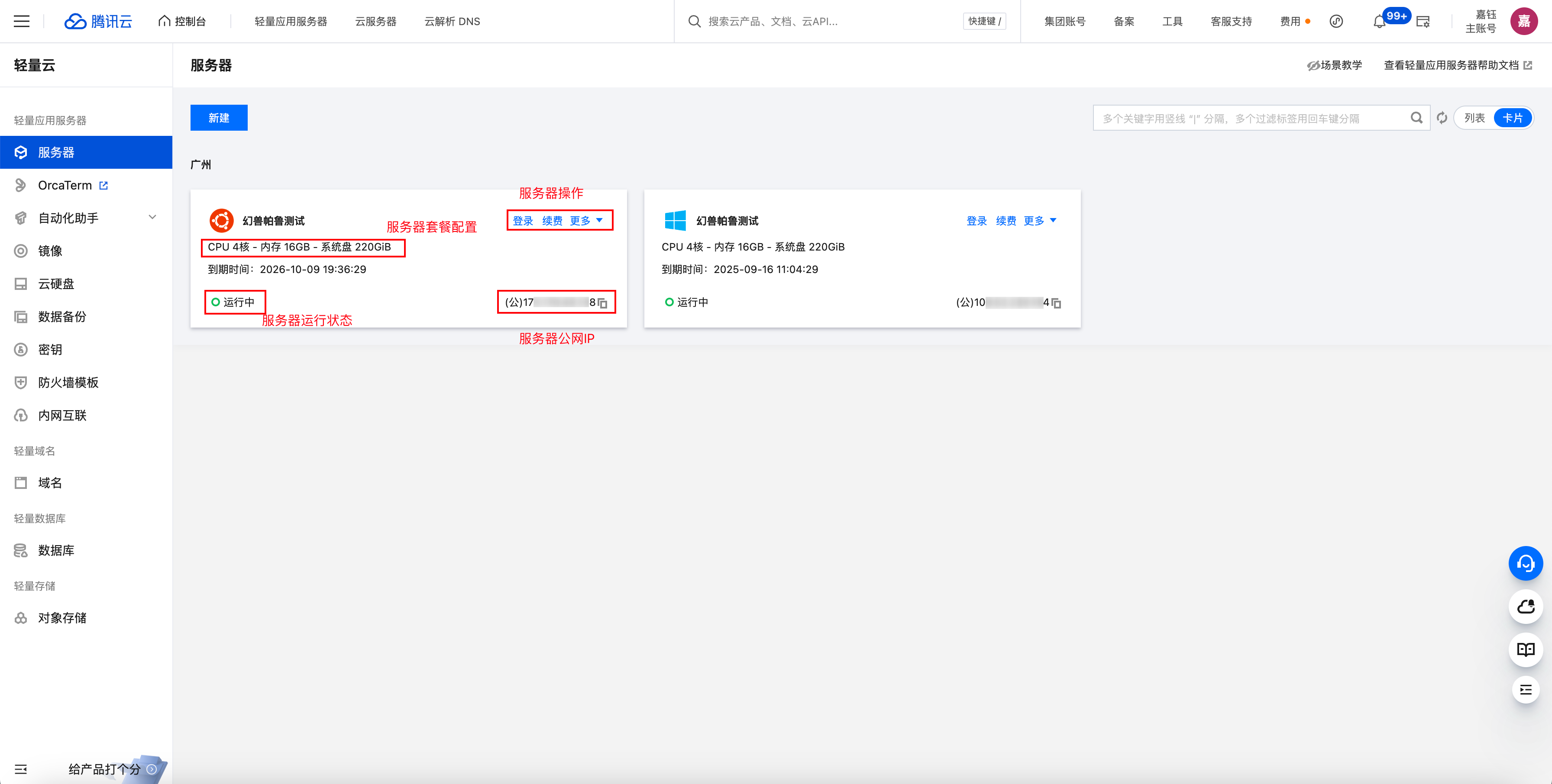 您可以前往轻量应用服务器控制台查看当前账号下已购买的服务器: