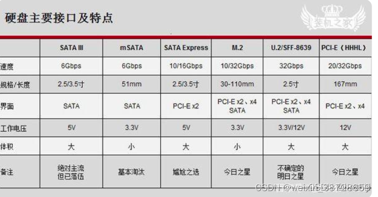 SATA/SAS/U.2/U.3 都是基于传统机械硬盘和后来的SSD发展起来的。以2.5寸 和3.5’寸硬盘形态出现。所以与msATA和M.2相比较,具有相同的协议,都走SATA,SAS或NVMe协议(除机械盘外,机械盘只有SATA和SAS)