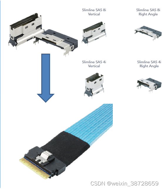 slimline SAS(SFF 8654) , Oculink SAS(SFF-8611)可以支持PCIe 4.0(16GTs)和SAS4.0(24Gbps). 有4X 和8X两种尺寸规格。