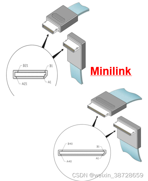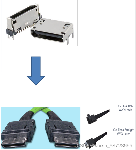 slimline SAS /oculink(Oculink与Minilink是一样的,仅对应的协议有区别时叫法不一样,Oculink是PCIe协议,而Minilink 是SAS协议) 与miniSAS一样,都是作为服务器内部互连或与外部连接的连接器。 OCuLink接口的主要应用场景是在移动设备和外置设备之间提供高速的PCIe扩展能力,例如外置显卡、存储设备、网络设备等.