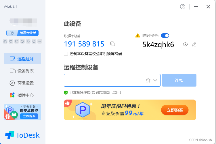 如果你需要控制另一台的电脑,那么另一台电脑上需要同样装上todesk这款软件,然后将设备代码和临时密码拿过来,填写到远程控制设备这里,填写临时密码,然后就可以远程控制了。