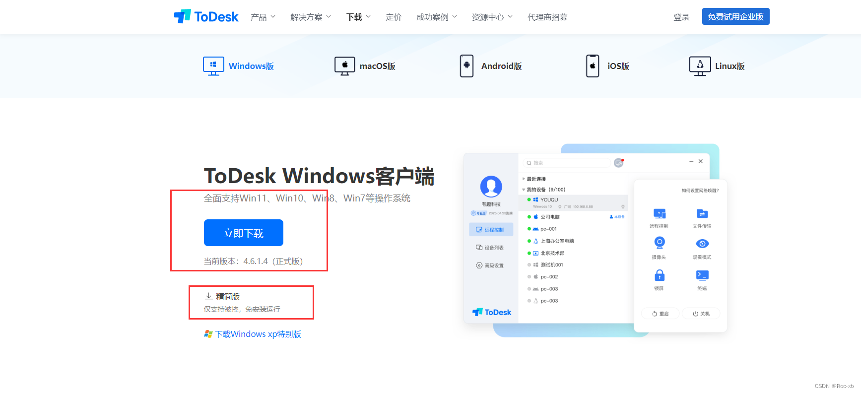 作为被控端,建议下载精简版(特点:无需安装,下载即用)