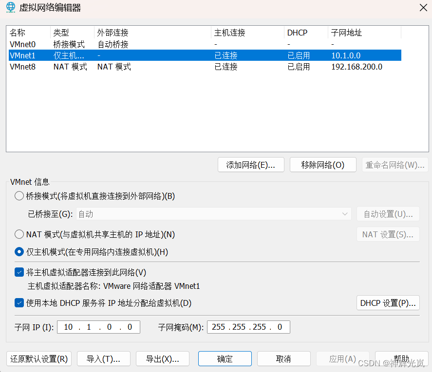 首先本次实验环境仅需用到一张仅主机模式的网卡