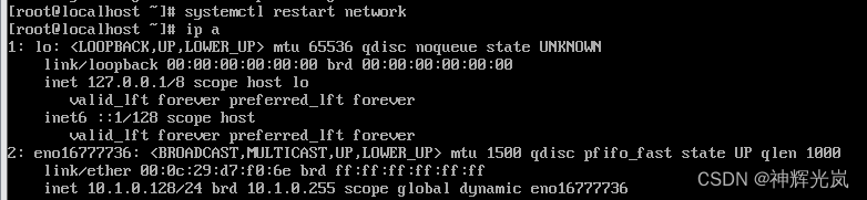 再用命令重启网络服务,就可以看到分配的地址为128。