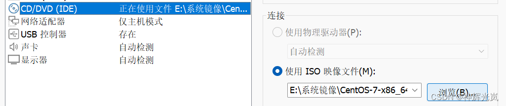 勾选上连接设备状态,点击浏览重新导入一次centos7.2的镜像,导入完毕后再重启一下虚拟机。