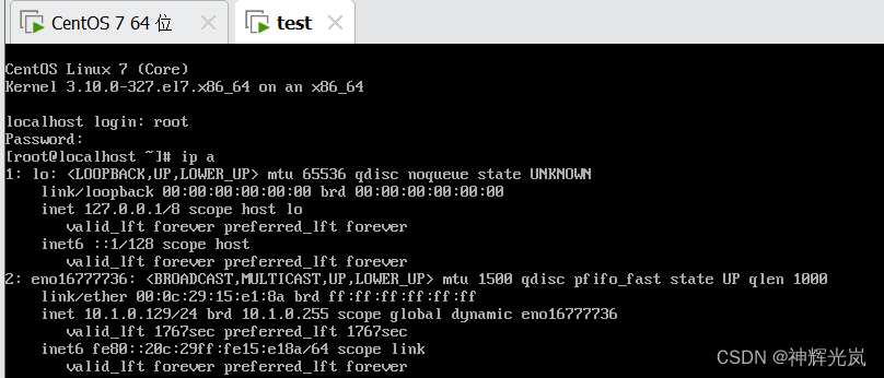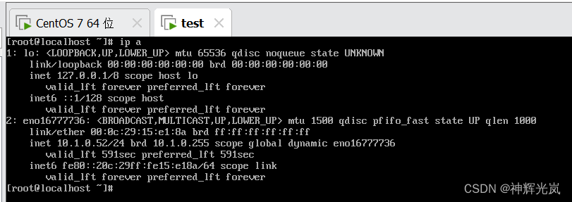 安装完毕进到系统里面先使用ip a命令查看一下地址。