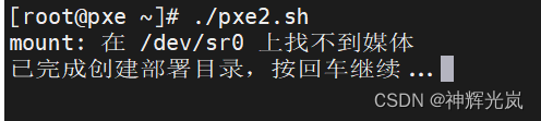 #!/bin/bash echo "10.1.0.10 pxe" >> /etc/hosts # 创建部署目录 mkdir -p /opt/centos mount /dev/cdrom /opt/centos read -p "已完成创建部署目录,按回车继续..." # 创建本地yum源配置文件 mv /etc/yum.repos.d/* /home cat << EOF > /etc/yum.repos.d/local.repo [centos] name=centos baseurl=file:///opt/centos gpgcheck=0 enabled=1 EOF read -p "已创建本地yum源配置文件,按回车继续..." # 检查源 yum clean all yum repolist read -p "已检查源,按回车继续..." # 配置网络接口 cat << EOF > /etc/sysconfig/network-scripts/ifcfg-eno16777736 TYPE=Ethernet BOOTPROTO=static DEFROUTE=yes IPV4_FAILURE_FATAL=yes IPV6INIT=no NAME=eno16777736 DEVICE=eno16777736 ONBOOT=yes IPADDR=10.1.0.10 NETMASK=255.255.255.0 GATEWAY=10.1.0.2 DNS1=10.1.0.2 EOF read -p "已配置网络接口,按回车继续..." # 启动并启用网络接口 systemctl restart network read -p "已启动并启用网络接口,按回车继续..." # 将主机名修改为 "pxe" hostnamectl set-hostname pxe read -p "已将主机名修改为 'pxe',按回车继续..." # 更新系统软件包 yum update -y --skip-broken read -p "已更新系统软件包,按回车继续..." # 关闭防火墙 systemctl stop firewalld systemctl disable firewalld read -p "已关闭防火墙,按回车继续..." # 安装所需软件包 yum install -y tftp-server syslinux httpd dhcp read -p "已安装所需软件包,按回车继续..." # 卸载光盘 umount /opt/centos read -p "已卸载光盘,按回车继续..." # 配置 DHCP 服务器 cat << EOF > /etc/dhcp/dhcpd.conf authoritative; ddns-update-style none; subnet 10.1.0.0 netmask 255.255.255.0 { range 10.1.0.50 10.1.0.100; option domain-name-servers 10.1.0.2; option routers 10.1.0.2; option broadcast-address 10.1.0.255; default-lease-time 600; max-lease-time 7200; filename "pxelinux.0"; } EOF read -p "已配置DHCP服务器,按回车继续..." # 启动并启用 DHCP 服务器 systemctl start dhcpd systemctl enable dhcpd read -p "已启动并启用DHCP服务器,按回车继续..." # 配置 TFTP 服务器 mkdir -p /var/lib/tftpboot cp /usr/share/syslinux/menu.c32 /var/lib/tftpboot/ cp /usr/share/syslinux/pxelinux.0 /var/lib/tftpboot/ # 复制vmlinuz和initrd.img文件 if [ -f /root/CentOS-7-x86_64-DVD-1511.iso ]; then mount -o loop /root/CentOS-7-x86_64-DVD-1511.iso /mnt cp /mnt/isolinux/{vmlinuz,initrd.img} /var/lib/tftpboot/ umount /mnt else echo "未找到CentOS-7-x86_64-DVD-1511.iso镜像文件,请确认路径是否正确。" exit 1 fi cat > /var/www/html/ks.cfg << EOF # 系统语言 lang en_US # 安装语言 keyboard us # 安装介质 cdrom # 系统时区 timezone Asia/Shanghai # 使用网络安装 url --url=http://10.1.0.10/CentOS-7-x86_64-DVD-1511 # root密码 rootpw --plaintext 000000 # 自动安装配置 autopart --type=plain # 使用默认分区方案 bootloader --location=mbr # 安装引导程序到 MBR zerombr # 清除磁盘主引导记录 clearpart --all --initlabel # 清除磁盘分区表 # 防火墙配置 firewall --disabled # Selinux配置 selinux --disabled # 安装后重新启动系统 reboot # 初始用户 user --name=wangle --password=000000 # 系统安装 text ignoredisk --only-use=sda %packages @^minimal @core %end EOF # 重启 TFTP 服务器 systemctl restart tftp read -p "已配置TFTP服务器并编写ks.cfg,文件按回车继续..." # 配置 PXE 引导配置文件 mkdir -p /var/lib/tftpboot/pxelinux.cfg cat << EOF > /var/lib/tftpboot/pxelinux.cfg/default default menu.c32 prompt 0 timeout 30 MENU TITLE PXE Boot Menu LABEL CentOS7_x86_64 MENU LABEL ^Install CentOS 7 x86_64 KERNEL vmlinuz APPEND initrd=initrd.img inst.repo=http://10.1.0.10/CentOS-7-x86_64-DVD-1511 ks=http://10.1.0.10/ks.cfg EOF read -p "已创建PXE引导配置文件,按回车继续..." # 配置 HTTP 服务器 mkdir -p /var/www/html/CentOS-7-x86_64-DVD-1511 mount -o loop /root/CentOS-7-x86_64-DVD-1511.iso /var/www/html/CentOS-7-x86_64-DVD-1511 read -p "已配置HTTP服务器,按回车继续..." # 启动并启用 HTTP 服务器 systemctl start httpd systemctl enable httpd read -p "已启动并启用HTTP服务器,按回车继续..." # 重启 TFTP 服务器 systemctl restart tftp # 清理并重启系统网络服务 systemctl restart network echo "PXE 服务部署完成!" 既然我们已经上传(制作)好了这个脚本文件。那接着我们对其使用命令赋予执行权限再运行它就ok了。