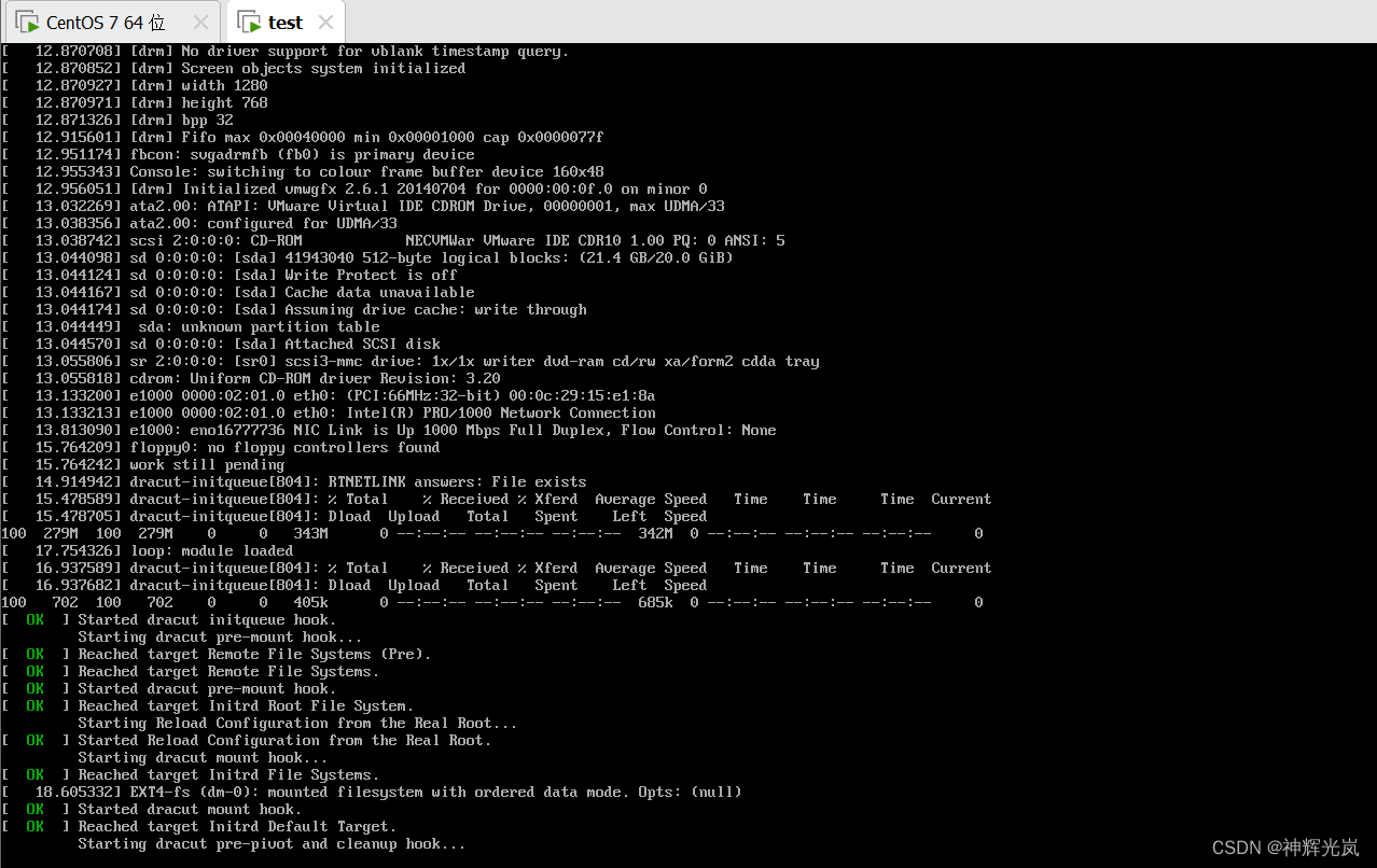 在启动虚拟机后的短暂几秒内,我们就会发现正在dhcp自动查找地址了。