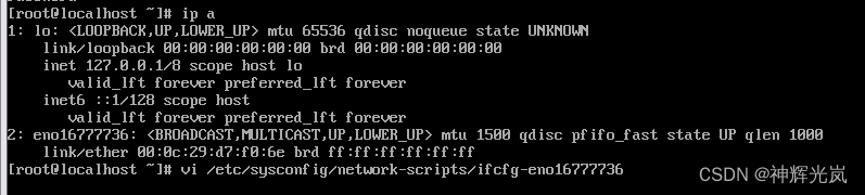 我这里不知道为什么网口是关的,所以我要进到这个网卡配置文件里面改一下启动参数。no改为yes然后:wq!保存退出即可。