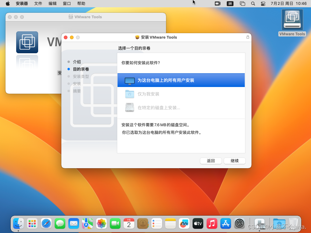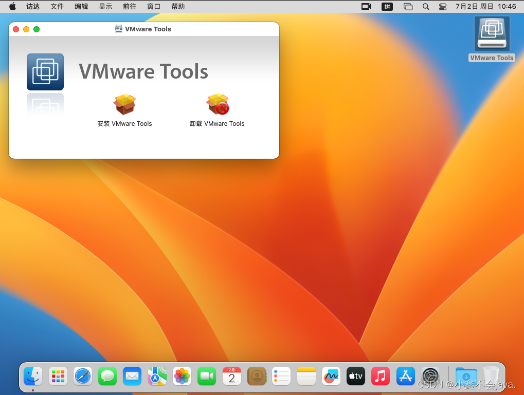 二、重启macos虚拟机后解锁双击VMware Tools运行安装镜像文件;