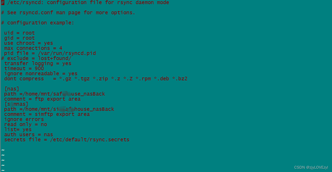 secrets file 为密码文件 编辑保存: vi /etc/default/rsync.secrets