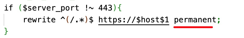 if ($server_port !~ 443){ rewrite ^(/.*)$ https://$host$1 permanent; # 永久重定向 } 目录对换