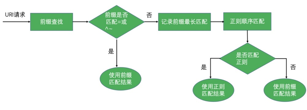 =^~/abc~、~*(区分、不区分大小写)/(注意:当同级匹配冲突时,首先依据长度优先、其次依据匹配次序优先)
