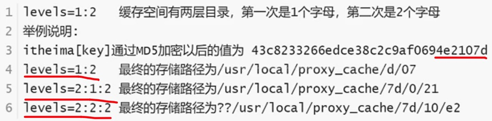 创建 1 个缓存总目录,然后利用参数值令 nginx 自行创建子缓存目录。
