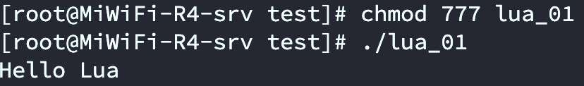 # 编辑、执行 vim lua_01 lua lua_01 vim lua_01 #! /usr/bin/lua print("Hello Lua") chmod 777 lua_01 ./lua_01