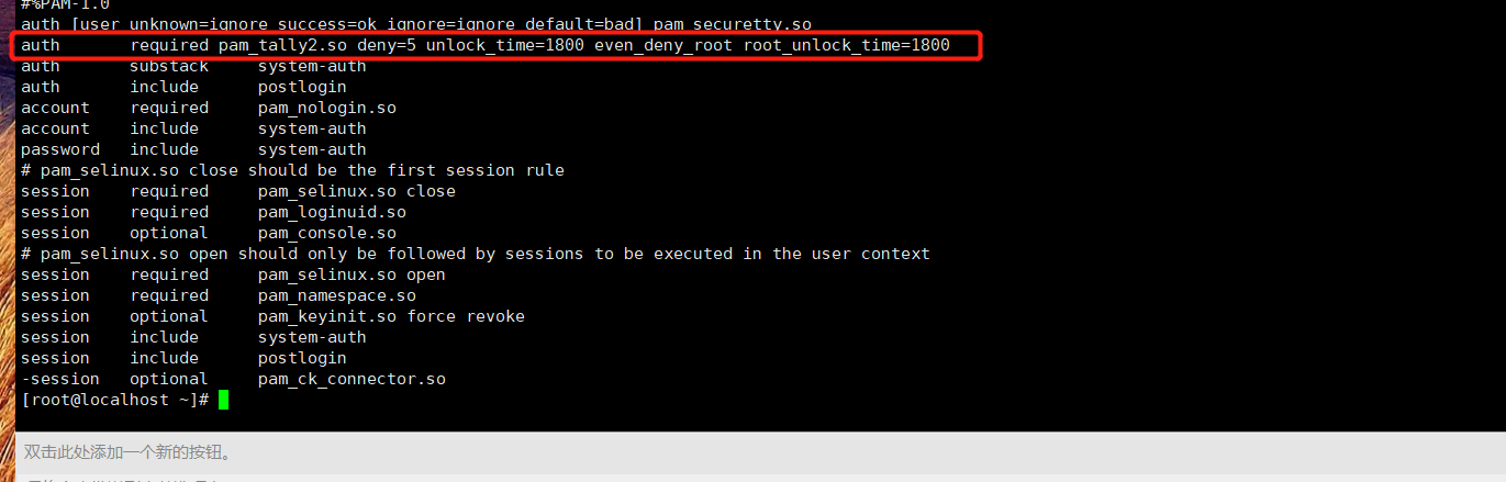 提示:/etc/pam.d/login文件尽量不做登录失败处理策略修改