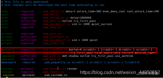 修改 vim /etc/pam.d/system-auth文件,但是,把策略配置放在password的配置第一行才会生效