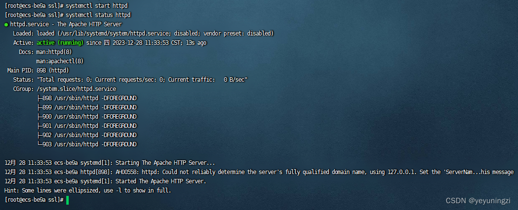 至此再确认一下防火墙设置、确认selinux的设定,再启动httpd服务就可以进行验证了。(当然如果要深入应用,我个人认为还需要再深入研究一下这个 /etc/httpd/conf.d/ssl.conf