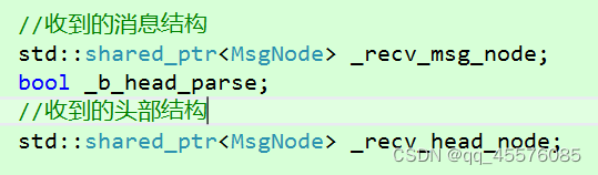 class MsgNode { public: //这里的构造方法主要方便后续调用Send接口构造消息节点 MsgNode(char* msg, short data_len) : total_len(data_len + HEAD_LENGTH), cur_len(0) { _data = new char[total_len + 1]; memcpy(_data, &data_len, HEAD_LENGTH); memcpy(_data + HEAD_LENGTH, msg, data_len); _data[total_len] = '\0'; } //这里的构造方法则是用于在进行切包过程中构造处理数据的节点 MsgNode(short data_len) :total_len(data_len), cur_len(0) { _data = new char[total_len + 1]; } //Clear方法是用于清理节点的数据,避免多次构造析构节点 void Clear() { memset(_data, 0, total_len); cur_len = 0; } ~MsgNode() { delete[] _data; } private: friend class Session; //表示已经处理的数据长度 int cur_len; //表示处理数据的总长度 int total_len; //表示数据的首地址 char* _data; }; 完善两个构造函数和添加Clear函数