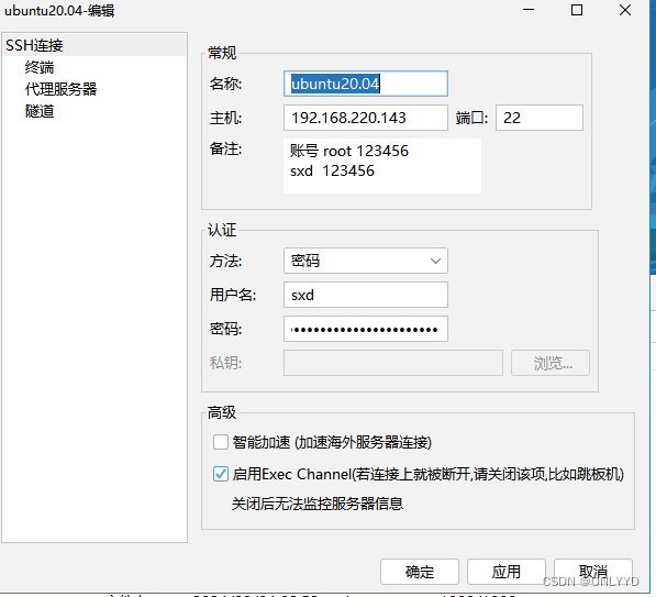 服务器初始账号密码 sxd / 123456