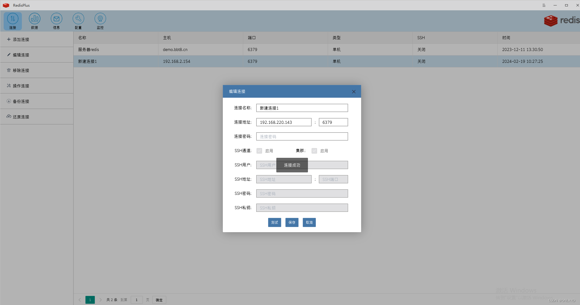 通过redis客户端软件测试