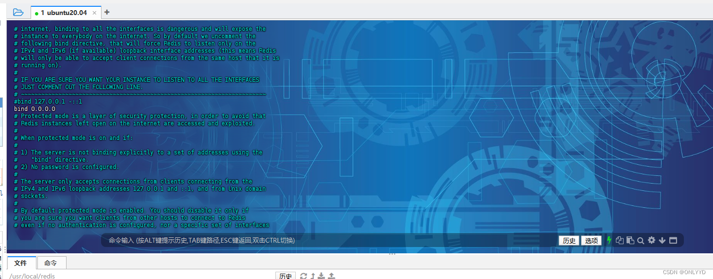 ln -s /usr/local/redis/bin/redis-cli /usr/bin/redis-cli ln -s /usr/local/redis/bin/redis-server /usr/bin/redis-server 设置redis配置文件 vim redis.conf