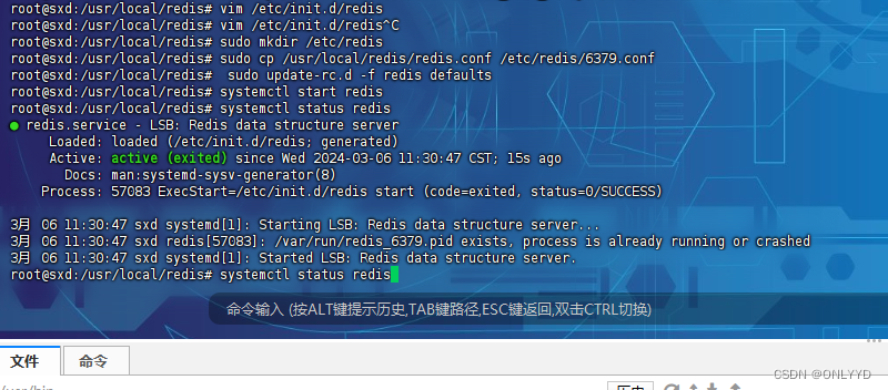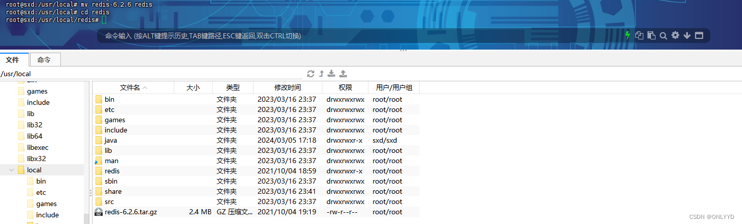 #下载并解压压缩包 cd /usr/local wget https://download.redis.io/releases/redis-6.2.6.tar.gz tar -zxvf redis-6.2.6.tar.gz mv redis-6.2.6 redis cd redis #安装编译环境 sudo apt install build-essential -y sudo make -j4 #安装redis sudo make PREFIX=/usr/local/redis install #设置redis文件权限 chmod -R 777 /usr/local/redis