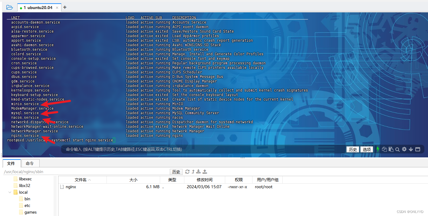 cd ~ vim .bashrc JAVA_HOME=/usr/local/java/jdk1.8.0_391 CLASSPATH=$JAVA_HOME/lib/ PATH=$PATH:$JAVA_HOME/bin export PATH JAVA_HOME CLASSPATH source .bashrc #安装mysql sudo apt-get install mysql-server #获取mysql状态 service mysql status #停止mysql service mysql stop #启动mysql service mysql start #开机自启mysql systemctl enable mysql